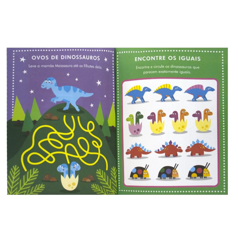 Divirta-se completando as atividades de Dinossauros neste livro encantador, com muitas páginas para colorir e adesivos fofos também!