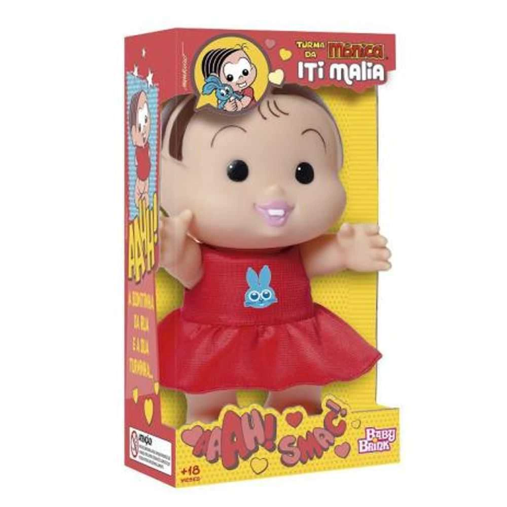 A personagem Mônica é fabricada em vinil atóxico, possui toque macio e está pronta para grandes aventuras ao seu lado!