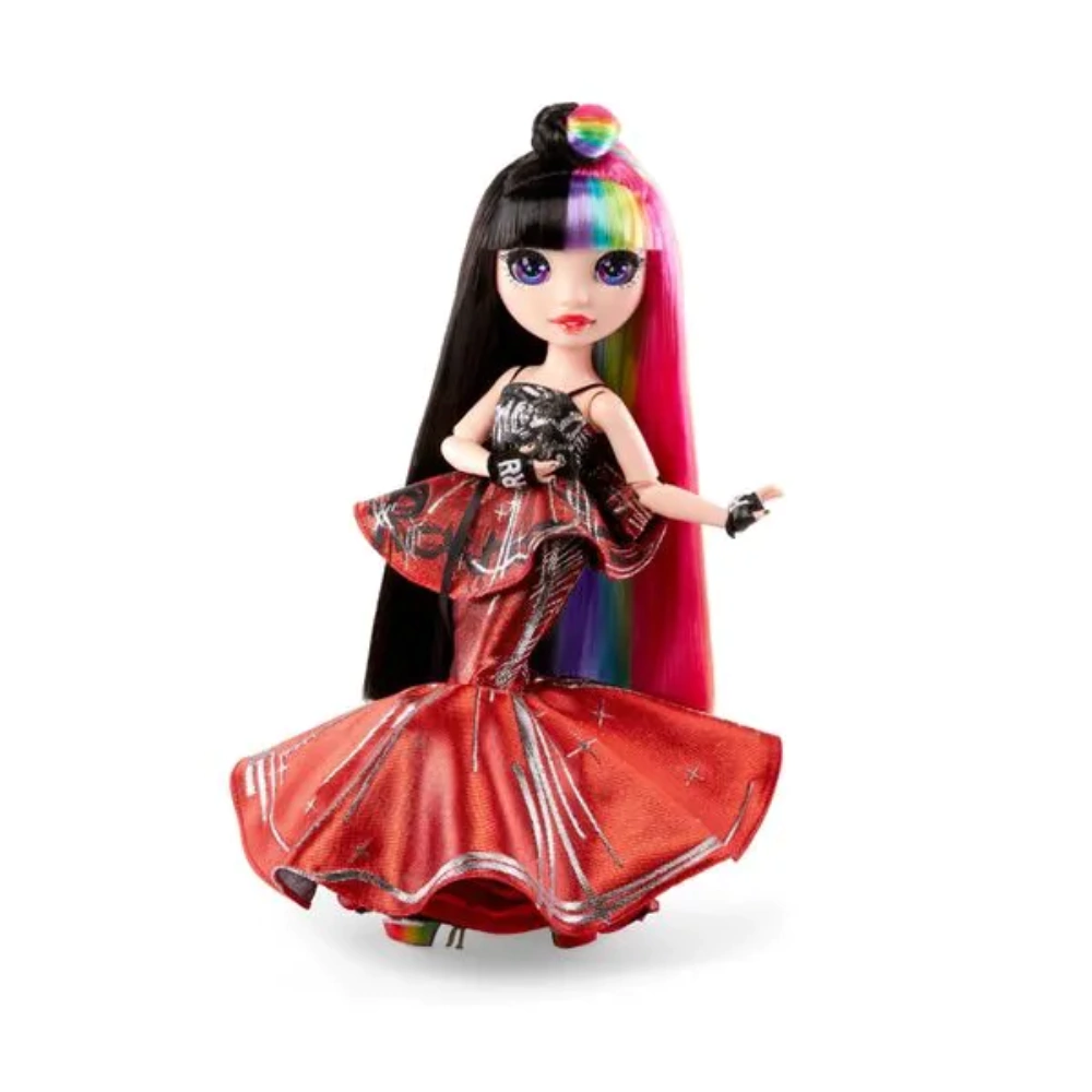 Apresentando a boneca de colecionador "Art of Fashion" com Jett Dawson, estilista formada na Rainbow High, junto com sua primeira criação de alta costura. Essencial para fãs de moda e colecionadores de todas as idades! Jett vem com 2 looks exclusivos, sapatos fashion e baús transparentes para guardar acessórios. O primeiro look é inspirado no estilo do dia a dia com peças descoladas, e o segundo é um deslumbrante vestido vermelho de seda, com detalhes em prata e preto, perfeito para brilhar na sua coleção. Além disso, Jett vem com acessórios incríveis como uma mini máquina de costura com peças móveis, um manequim e uma fita métrica. Seu cabelo longo, metade preto e metade arco-íris, pode ser penteado e modelado. Ao desembalar, basta lavar e secar o cabelo para deixá-lo pronto para estilizar. A embalagem edição limitada simula um baú real e inclui uma etiqueta especial de colecionador e um selo de cera com o símbolo RH. Jett é totalmente articulada, permitindo muitas poses glamourosas, e pode ser exibida no suporte incluso.