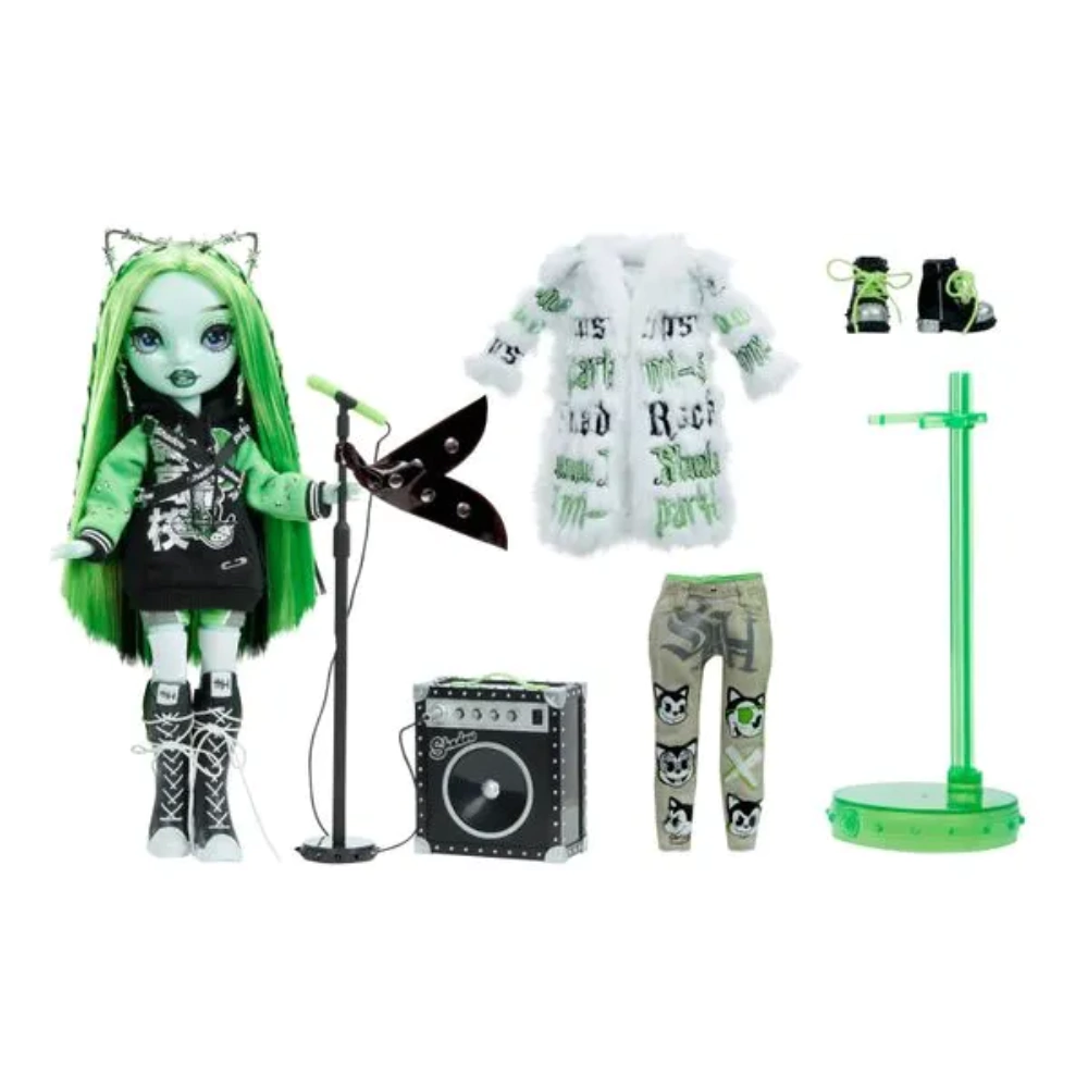 Rainbow Vision Shadow High Neon - Harley Limestone (Verde Neon) boneca fashion. 2 roupas de grife, acessórios de banda de rock mix & match.