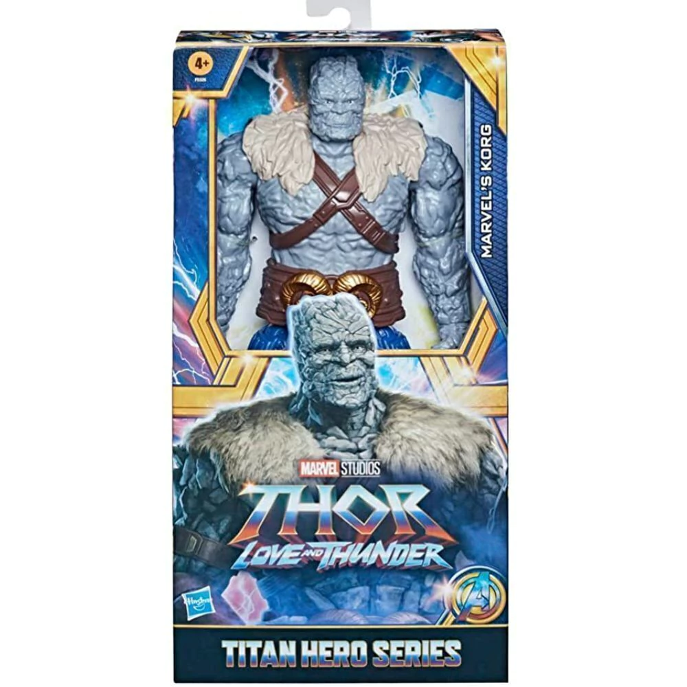 KORG, PARCEIRO DE BATALHA E MELHOR AMIGO DE THOR, ESTÁ SEMPRE AO LADO DELE NÃO IMPORTA QUÃO PERIGOSA SEJA A MISSÃO. Toda emoção do Universo Marvel com as figuras Titan Hero Series Thor! Crianças a partir de 4 anos podem imaginar um universo de super-heróis com estas figuras de 30 cm da Marvel, inspiradas em Thor: Love and Thunder, filme do Cineverso Marvel. Apresentando design e detalhes inspirados no filme, bem como vários pontos de articulação para mais diversão, meninos e meninas vão adorar imaginar aventuras em tamanho titânico!