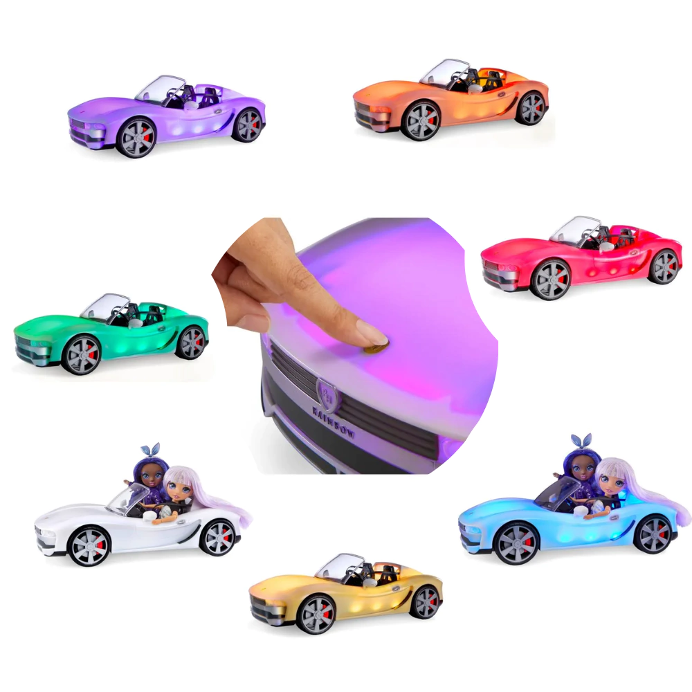 CARRO CONVERSÍVEL: Chegue ao Rainbow High com estilo com o Rainbow High 8-in-1 Light up Color Change Car. Pegue seus amigos e dê uma volta com o carro esportivo conversível mais moderno da escola. Por que se contentar com um carro de uma cor quando você pode ter o arco-íris. Carro 8-in-1 Color Changing - basta pressionar o botão para selecionar a cor do seu carro. Começa com branco e então você pode escolher qualquer cor do arco-íris (branco, vermelho, laranja, amarelo, verde, azul ou roxo) ou alternar entre todas elas!