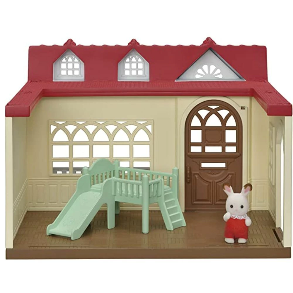 Conteúdo da embalagem: 01 casa de um andar com um incrível terraço de entrada, 01 Bebê Coelho Chocolate e 01 cama com escorregador.