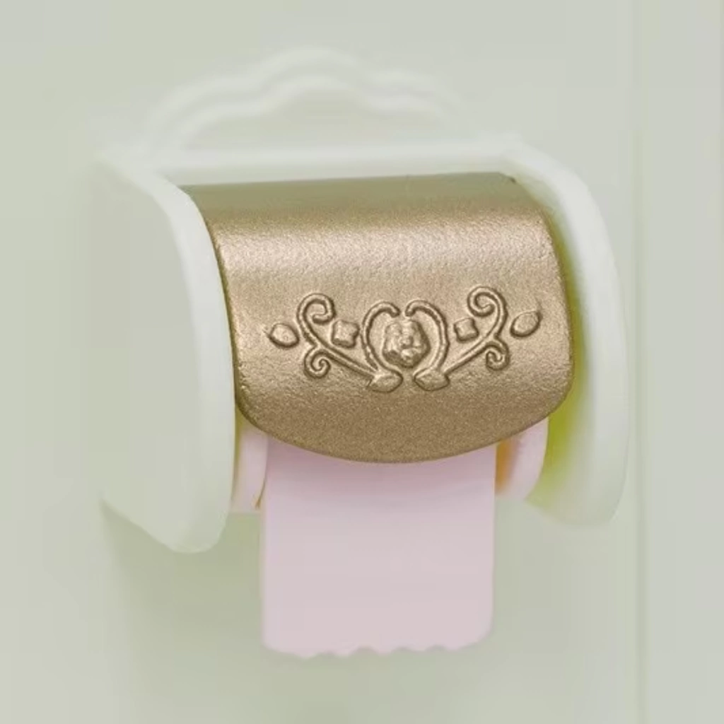 É possível acionar a descarga puxando a alavanca do vaso sanitário e o papel higiênico pode ser desenrolado.