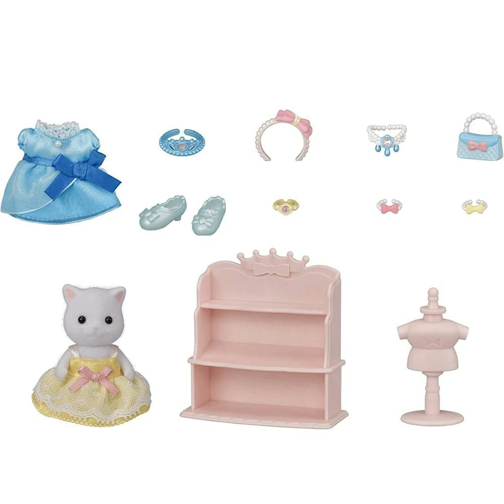 Misture e combine vestidos, tiara, acessórios e sapatos para dar aos seus Sylvanians uma transformação de princesa!