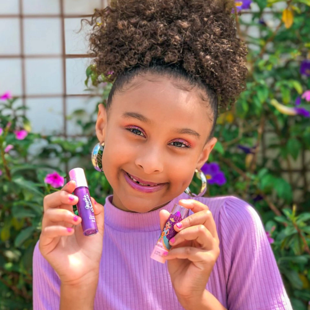Batom com glitter: Um batom cremoso com um toque suave de cor e brilho, perfeito para dar um toque de elegância ao sorriso da sua princesa.