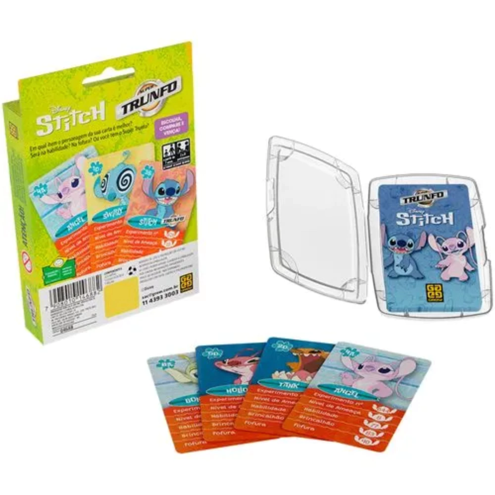 O Super Trunfo Stitch é um jogo de cartas divertido e educativo, ideal para fãs do personagem Stitch. Com ilustrações vibrantes e informações interessantes sobre o personagem, este jogo estimula o raciocínio lógico, a memória e a estratégia. Fabricado com materiais de alta qualidade, suas cartas são resistentes e fáceis de manusear, garantindo durabilidade durante as partidas. Perfeito para jogar em família ou com amigos, o Super Trunfo Stitch proporciona horas de entretenimento e aprendizado. Uma excelente opção de presente para crianças e adolescentes que apreciam o universo da Disney e personagens marcantes como Stitch. Ideal para estimular a socialização, o pensamento crítico e a diversão saudável.
