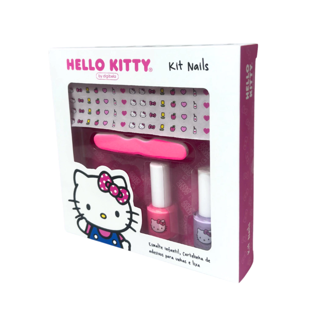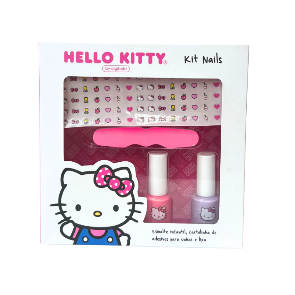 O Kit Nails Esmaltes Infantis Hello Kitty by digibela é a maneira perfeita para as pequenas fashionistas expressarem sua criatividade e amor pela Hello Kitty! Com cores vibrantes e fórmula à base de água, este kit oferece esmaltes seguros e fáceis de remover através da tecnologia "Peel Off", remoção adesiva sem o uso de agentes removedores, permitindo que as crianças explorem o mundo das cores sem preocupações. As unhas se tornam uma tela para a imaginação, com a garantia de um produto que prioriza a saúde e o bem-estar das crianças com toda a diversão do universo Hello Kitty!