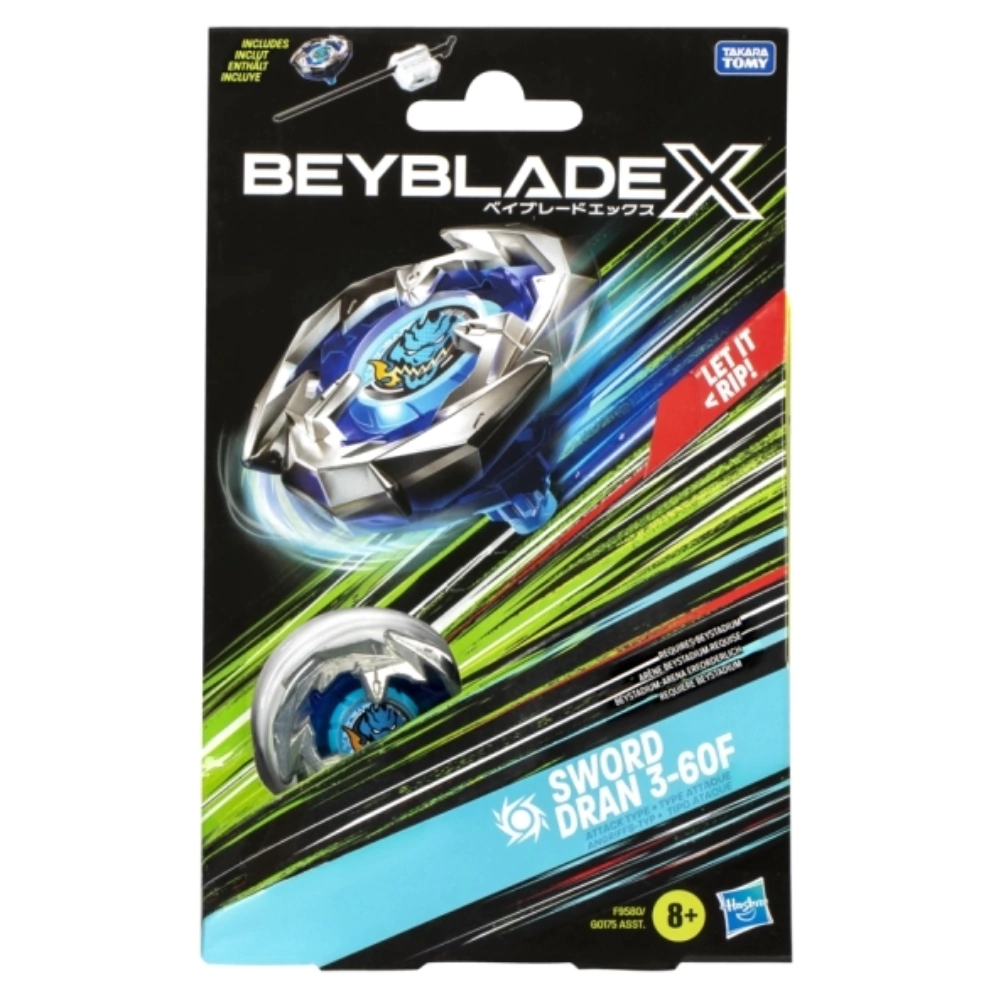 Toda a emoção da nova geração de arenas, lançadores e piões Beyblade: Este kit Inicial Beyblade X inclui 1 pião Sword Dran 3-60F tipo ataque e giro à direita e 1 lançador (requer Arena Beystadium required, vendida separadamente). Entrar direto na batalha ou personalizar as camadas intercambiáveis da lâmina, engrenagem e ponta com outros piões Beyblade X (vendidos separadamente). O Beyblade X traz o sistema de engrenagem X-Celerator para elevar a batalha. Quando as engrenagens do pião Beyblade X encontram a guia da arena Beystadium, os piões são lançados com um avanço Xtreme e alcançam velocidades surpreendentes que geram eclosões incríveis e impactos colossais. Os fãs lançam os seus piões em batalhas selvagens contra os seus oponentes. O primeiro a marcar 4 pontos é o vencedor. Os brinquedos Hasbro Beyblade com metal fundido Takara Tomy autêntico são excelentes presentes para meninos e meninas a partir dos 8 anos.