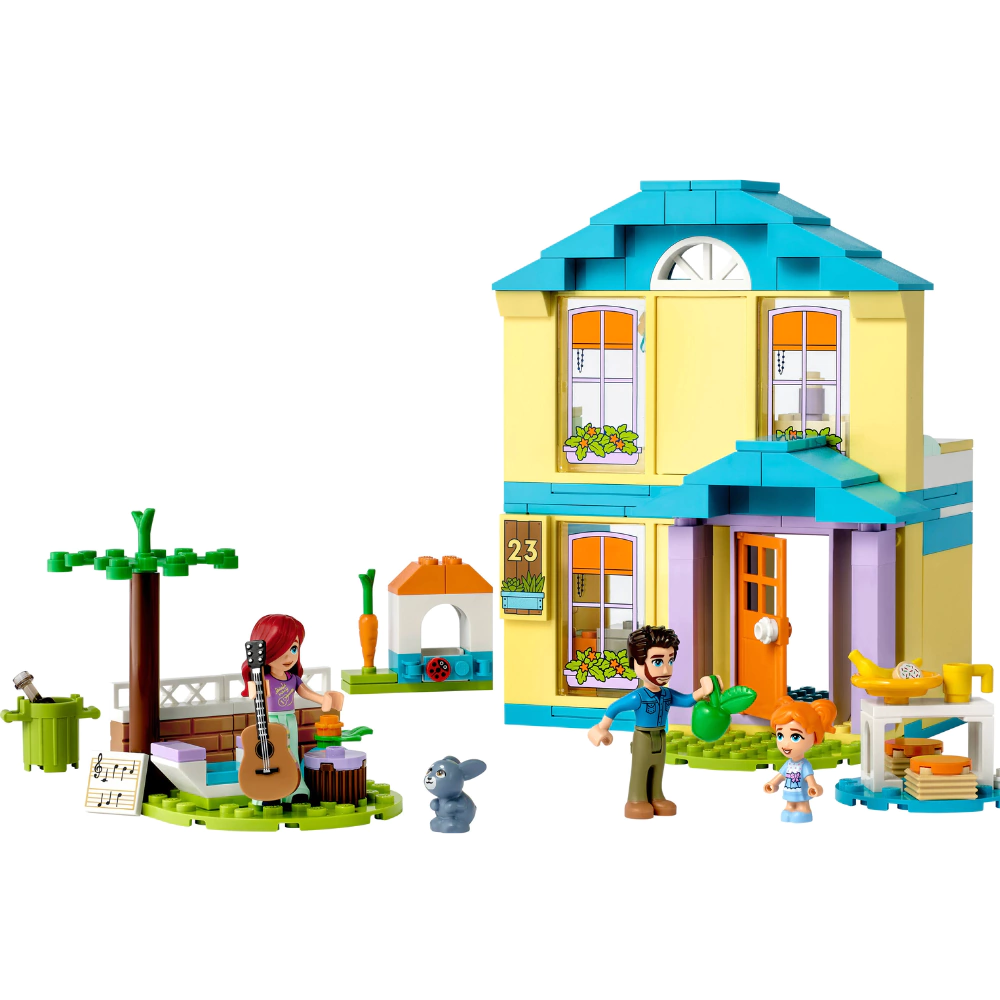 Jovens construtores com mais de 4 anos têm muito a descobrir neste conjunto LEGO Friends A Casa de Paisley (41724). O piso superior inclui um quarto e banheiro e pode ser removido, facilitando a exploração da cozinha abaixo. Há acessórios para dramatizações, como salgadinhos e frutas para comer na mesa externa, além de lata para reciclagem. No quintal, há um canto aconchegante onde Paisley toca violão e escreve música enquanto faz companhia a seu coelhinho de estimação.