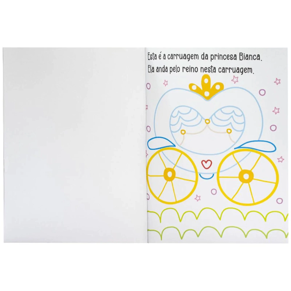 Um livro para ler e colorir encantador para a crianca, onde ela seguirá os contornos coloridos para pintar. Além disso, há também uma página de adesivos de strass para decorar os desenhos.