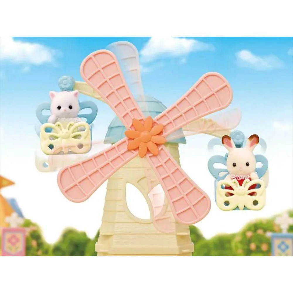 Parque de Moinho de Ventos para Bebês é um parque infantil para figuras de bebês, e inclui um moinho de vento, gôndola borboleta, escorregador de flores e balanços de tulipas. Inclui o popular Bebê Gato Persa. O giro do moinho de vento faz a gôndola borboleta subir e descer. As figuras do bebê podem ser colocadas na gôndola e no balancim. Este conjunto inclui uma figura e móveis e pode-se brincar sozinho.