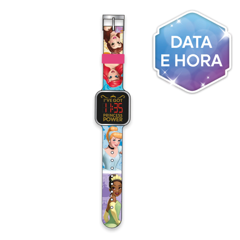 O Relógio LED Infantil Princesas da Toyng é o acessório perfeito para deixar a rotina mais mágica e divertida. Com design encantador inspirado nas princesas mais amadas da Disney, ele combina funcionalidade com um visual cheio de brilho e fantasia.