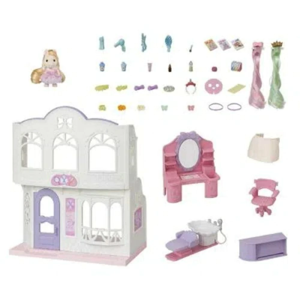 O conjunto Salão de Cabeleireiro da Pônei apresenta um lindo salão de cabeleireiro e a menina pônei de cabelos sedosos, Sally. Inclui acessórios para brincar de cabelo e maquiagem.