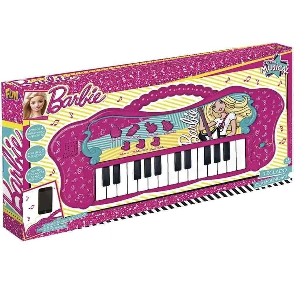 Desperte o lado musical da sua menina com esse Teclado Fabuloso com função MP3 Player da Barbie.